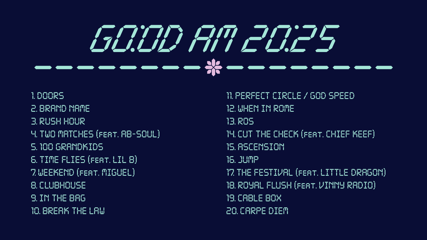 Leading up to the 2015 release of “GO:OD AM” — Mac Miller’s third studio album and major label debut — Delve Fonts was commissioned to create custom lettering to be featured on the album, packaging, merch, stage props, and more. The letterforms were inspired by classic LCD clock face displays, a typographic visual that relates to the album concept.